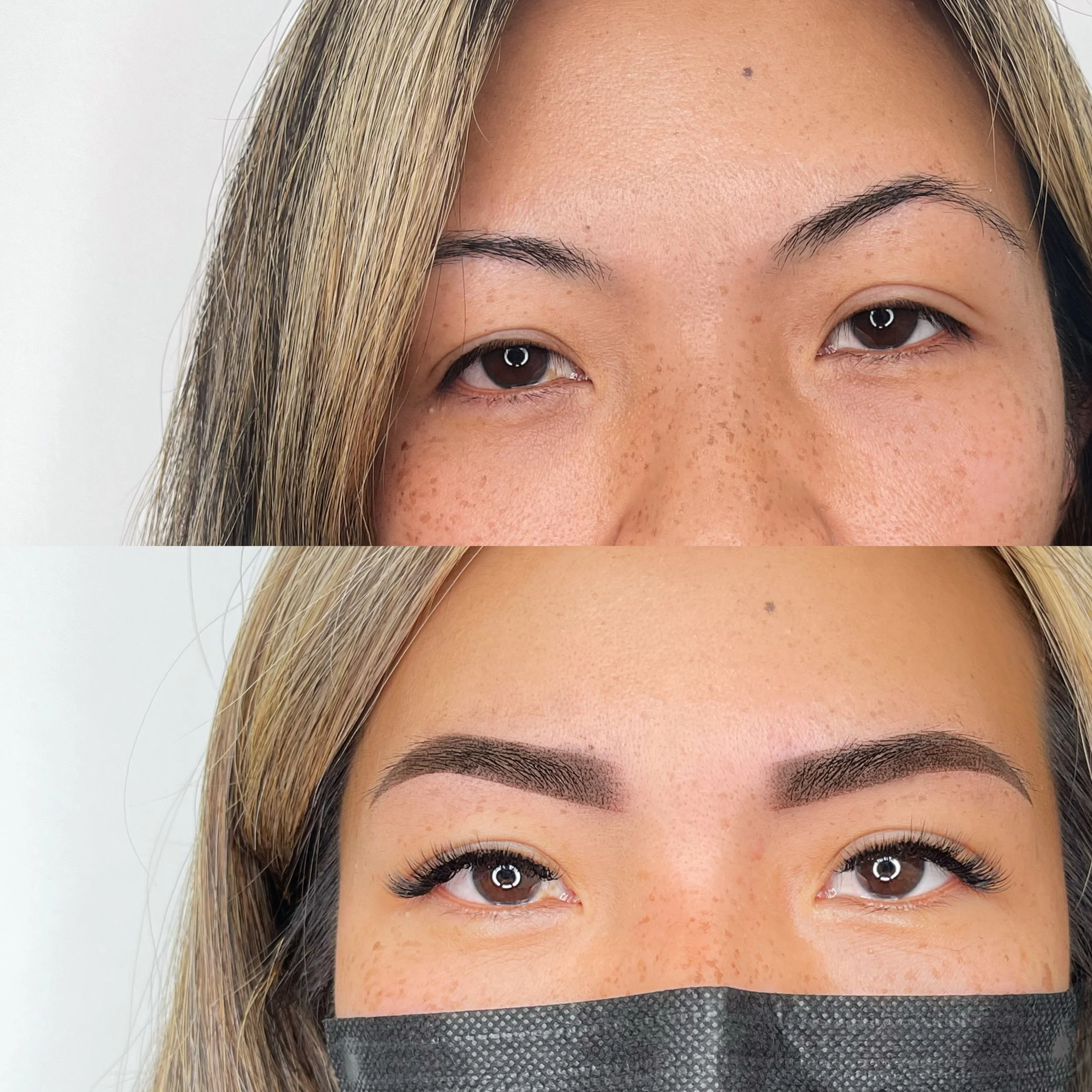 If the existing brow tattoo doesn't align with our criteria for correction and cover-up, we recommend laser brow removal before embarking on a fresh brow tattoo journey.